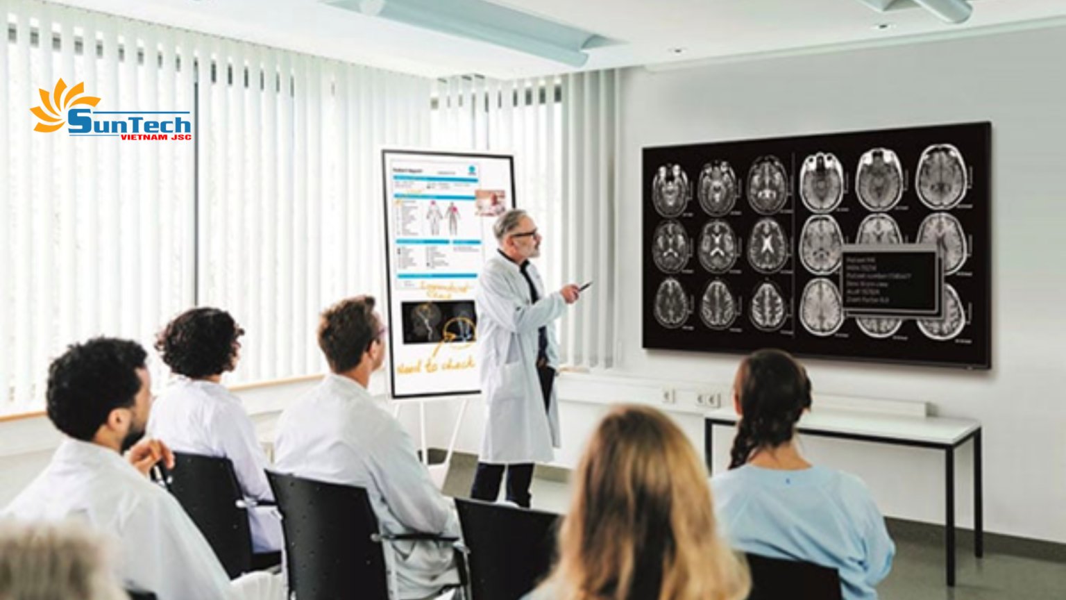 Việc sử dụng các hình ảnh y khoa chuyên biệt như CT Scan, X-quang… trong chẩn đoán và hội chẩn y tế là vô cùng quan trọng. Chính vì vậy, việc ứng dụng màn hình tương tác trong lĩnh vực y tế là không thể thiếu. Thiết bị này mang lại hỗ trợ đắc lực trong việc hiển thị, phóng to, phân tích và trao đổi thông tin y khoa một cách trực quan và chính xác.