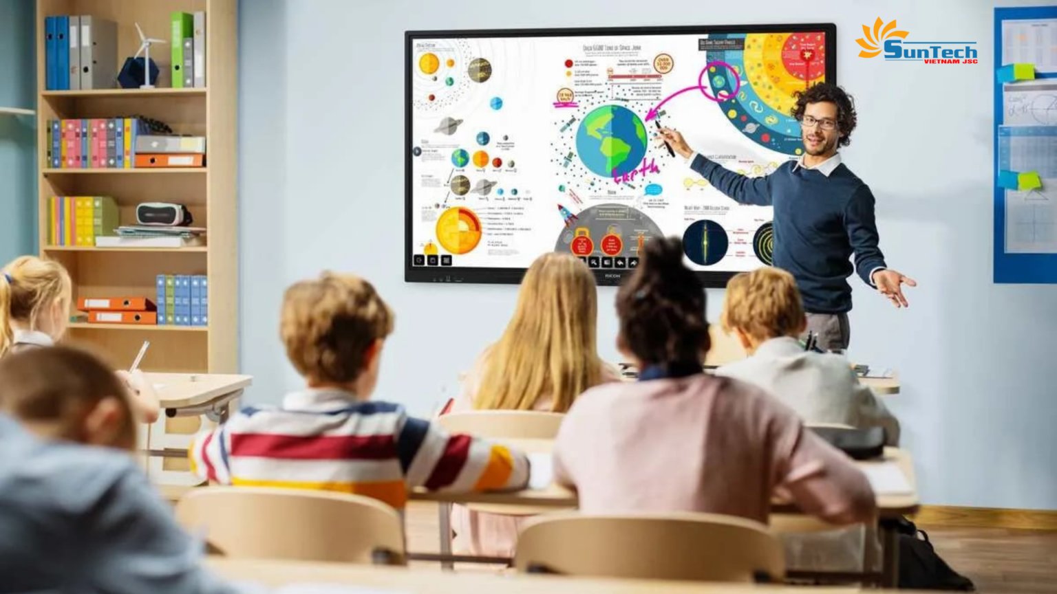 Màn hình tương tác đang dần trở thành công cụ công nghệ hiện đại, mang lại trải nghiệm trực quan và sinh động trong nhiều lĩnh vực. Từ giáo dục, bán lẻ cho đến doanh nghiệp, thiết bị này giúp tăng khả năng kết nối, truyền đạt thông tin và thu hút người dùng một cách hiệu quả. Ở bài viết này Suntech sẽ giải đáp thắc mắc về định nghĩa và lợi ích của việc sử dụng màn hình tương tác trong nhiều ngành nghề để bạn có thể hiểu rõ hơn về màn hình tương tác nhé.