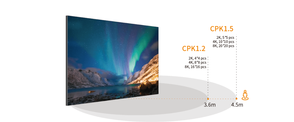 Dòng sản phẩm CPK1.5 cung cấp đa dạng các giải pháp hiển thị 2K/4K/8K theo nhu cầu. Màn hình của chúng tôi đảm bảo chất lượng độ phân giải cao cho mọi khoảng cách xem, từ cận cảnh chi tiết đến góc nhìn rộng.