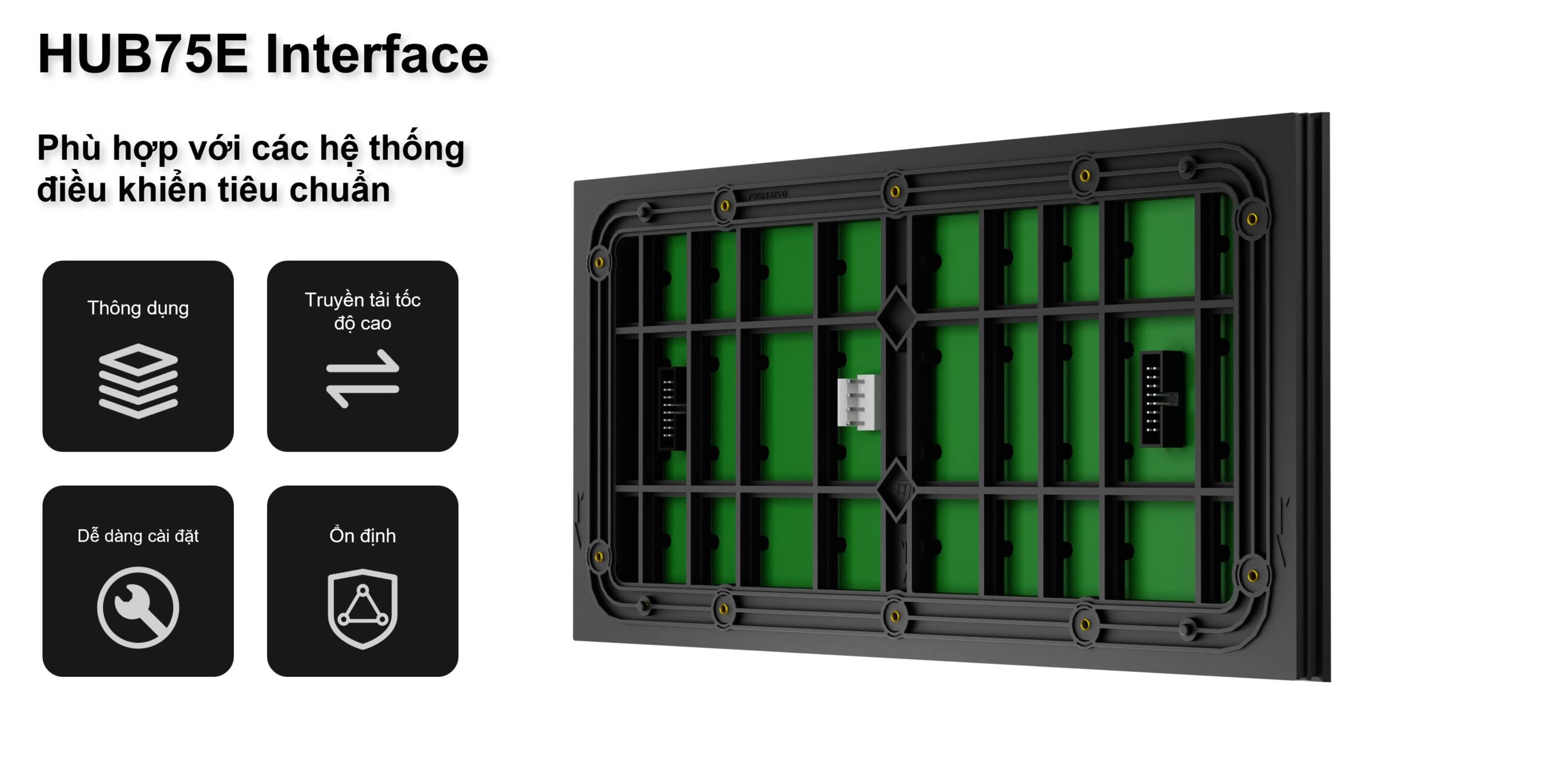 Module LED ngoài trời LVS0500 là sản phẩm hiển thị hiệu suất cao, tương thích với các hệ thống điều khiển phổ biến trên thị trường. Quy trình sản xuất và quản lý vật liệu được thực hiện theo các tiêu chuẩn khắt khe, đảm bảo độ tin cậy cao và tuổi thọ bền bỉ.