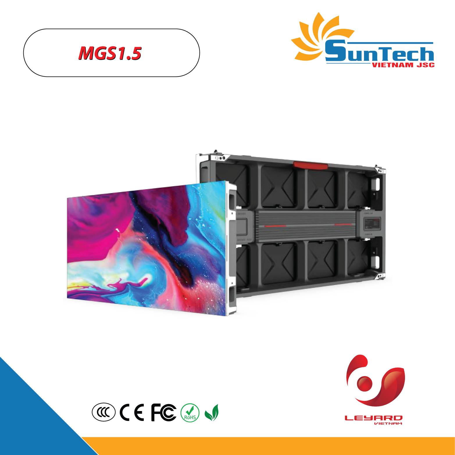 MGS1.5 có độ bền cao, phù hợp với nhiều ứng dụng khác nhau. Các tính năng nổi bật MGS1.5 bao gồm khung nhôm cứng cáp, hệ thống tản nhiệt hiệu quả, tiêu thụ điện năng thấp, đạt chuẩn chống nước và bụi IP65, công nghệ MicroLED với đóng gói flip-chip toàn diện. Hiệu suất hiển thị vượt xa mong đợi